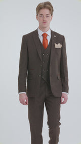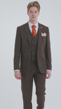 Mens Brown 3 Piece Suit with Double Breasted Waistcoat