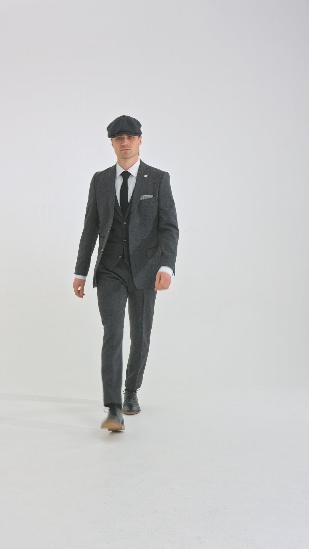 Men's Charcoal Grey 3 Piece Tweed Herringbone Suit - STZ11